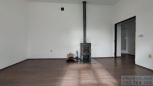 Dispozice bytu nabízí vstupní chodbu, obývací pokoj s krbem, ložnici a dětský pokoj, kuchyň s rohovou linkou, která je vybavena vestavěnými spotřebiči (trouba, varná deska, myčka, digestoř). V koupelně se nachází vana, umyvadlo a přípojka na pračku. Byt je po rekonstrukci, plastová okna se žaluziemi, vinylové podlahy v kombinaci s dlažbou. Byt má dispozici působící útulně a vzdušně. Okna dětského pokoje a kuchyně jsou směřována do zahrady což zajišťuje klid a příjemnou atmosféru v bytě.