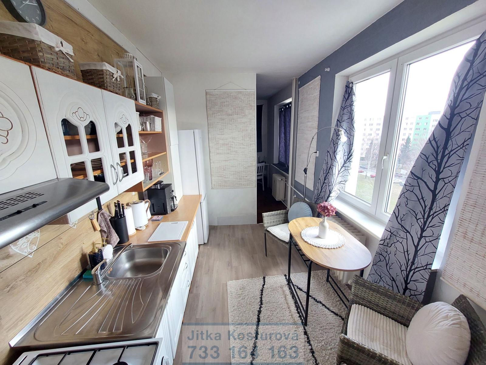 Nabízíme k pronájmu slunný byt o dispozici 2+1, který se nachází v 6. nadzemním podlaží panelového domu na adrese SPC H 42 v Krnově. Osmipodlažní dům s výtahem prošel revitalizací, je umístěn v krajní části města v sídlištní zástavbě, v dosahu MHD i občanské vybavenosti. Byt má výměru 55 m2, včetně sklepa, v původním udržovaném stavu. Rekonstrukcí prošla koupelna cca před 15 lety a 2 roky lodžie u obývacího pokoje, ze které je nádherný výhled na nedaleký kopec Cvilín. Okna jsou plastová dvoukomorová, částečně se žaluziemi. Původní bytové jádro bylo v koupelně i WC obloženo sádrokartonem a obklady. V bytě se nachází vstupní chodba, 2 pokoje, koupelna s umyvadlem, vanou a přípojkou na pračku. WC je samostatné, kombi. Kuchyň je průchozí, součástí je kuchyňská linka staršího typu, vybavená plynovým sporákem, elektrickou troubou a digestoří. Rozvody elektřiny jsou původní v hliníku, rozvody vody jsou v plastu. Na podlaze je položeno linoleum, v koupelně a WC dlažba. Z vybavení je k dispozici pračka, lednička a gauč. Vytápění bytu je dálkové, teplo rozvádí litinové radiátory v pokojích. K bytu náleží sklep. Celkové náklady na bydlení činí cca Čtyřitisíce Kč měsíčně pro 2 osoby, nájemné ve výši Jedenácttisícpětset Kč, kauce 2 nájmy, provize 1 nájem.